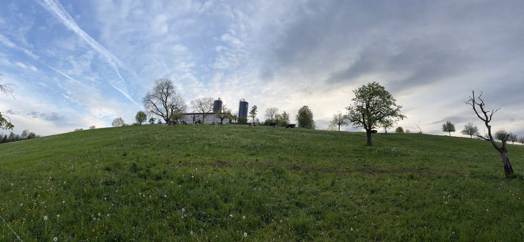 Auf der Strasse einige verirrte Würmer. Die Rinder liegen zufrieden im Stroh und geniessen das Nichtstun. Könnte man meinen. Ich öffne die Weide und sperre die Wege. Im Freilauf der Tiere ist niemand zu sehen. Noch niemand. Der letzte Handgriff ist das Öffnen des Gatters. Die Rollen scheppern über die Betonplatte. Und Zack, alle stehen sie da. Zwölf Rinder. Sie hören und spüren alles, denke ich. Sie merken, wann sie die Chance packen sollten. Die Chance für Freiheit. Im Eilzugstempo marschieren sie an mir vorbei auf die neu abgesteckte Weide. Hätte es bereits geregnet, hätten sie keinen Wank gemacht. Jetzt aber kann das wertvolle Nass getrost kommen. Sind sie schon auf der Weide, stört sie eine Dusche nicht. Im Gegenteil.